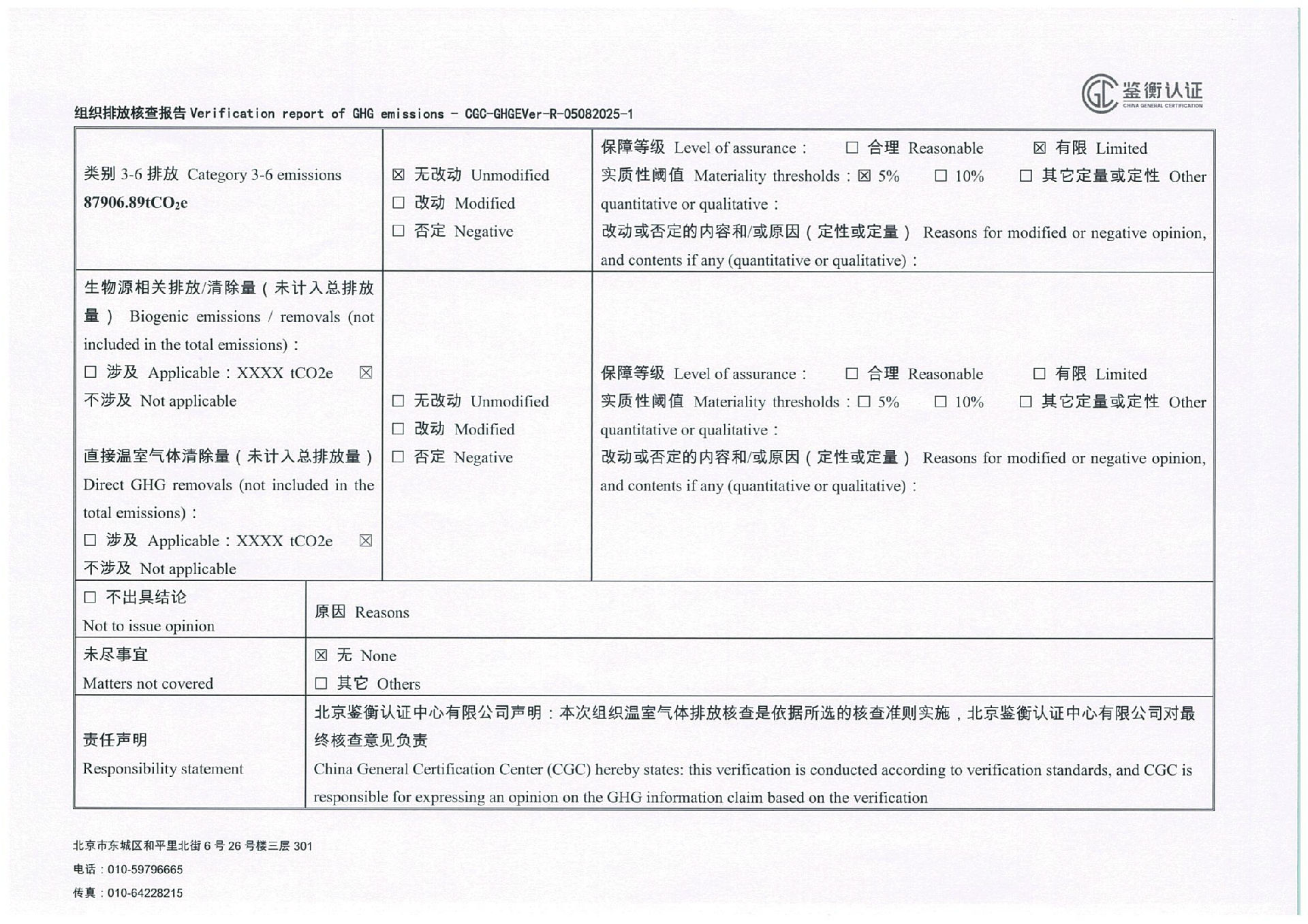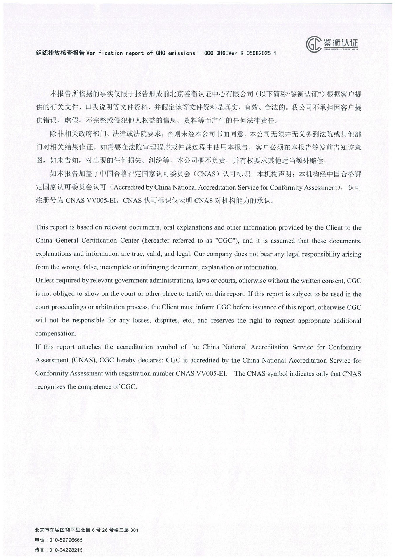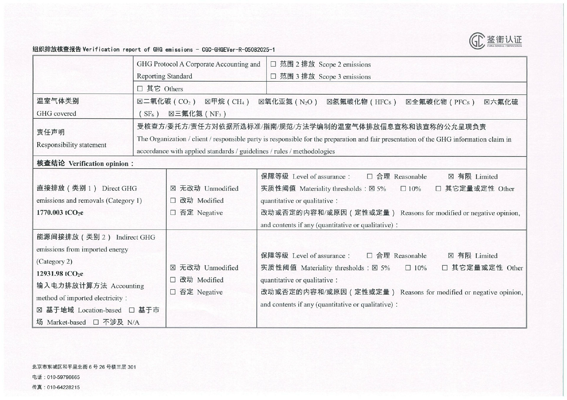 2024年度組織溫室氣體排放和清除核查報(bào)告及聲明