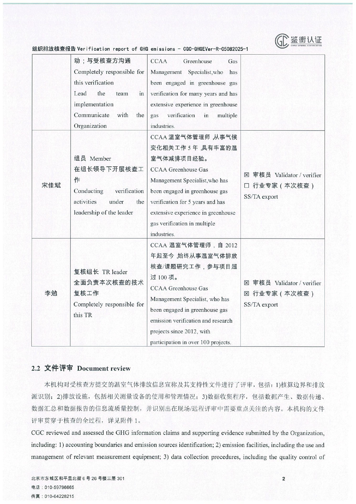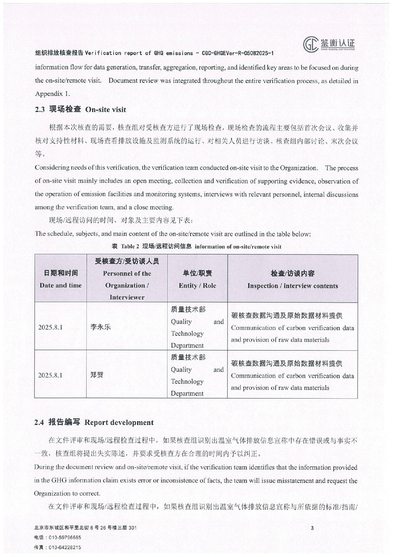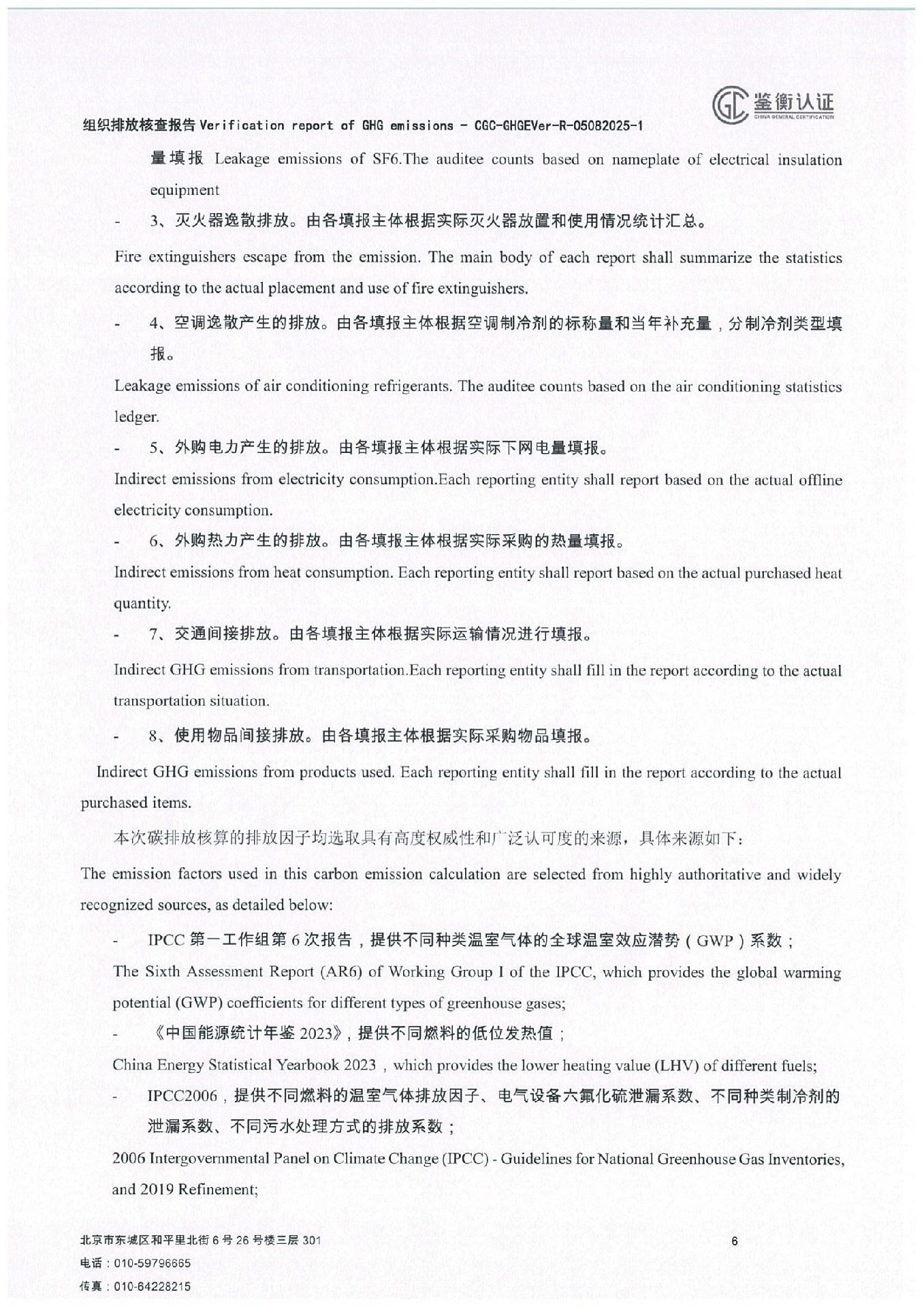 2024年度組織溫室氣體排放和清除核查報(bào)告及聲明